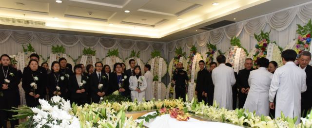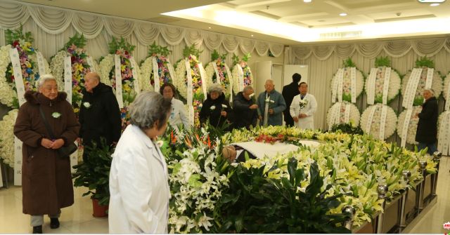 前来告别的各级领导、北京协和医院领导及职工、兄弟医院同仁、方圻教授亲朋好友与社会各界人士达1600多人。告别厅外沿途的电视机里循环播放着“方圻教授一生”的短片。在行进的队伍中,白发苍苍的老教授们向身边的年轻人深情讲述着与方老共事的点点滴滴,年轻人们肃穆聆听,心中充满了敬意。进入告别厅,人们手持白菊,缓步来到方圻教授的遗体前,肃立默哀,鞠躬行礼,敬献白菊,寄托对这位德高望重的仁爱长者的无限哀思。